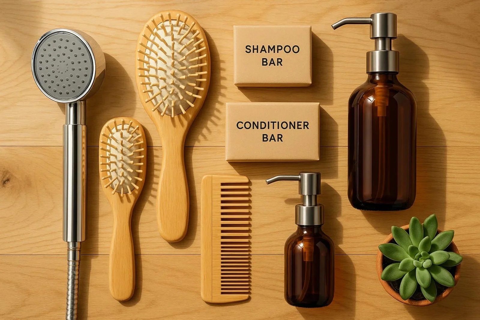 Switch to sustainable tools-like bamboo brushes or plant-based combs.