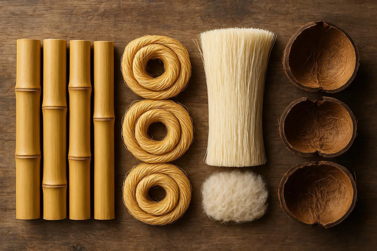 Plant-based bristles (sisal, coconut, tampico) are tough, clean well, and break down naturally.