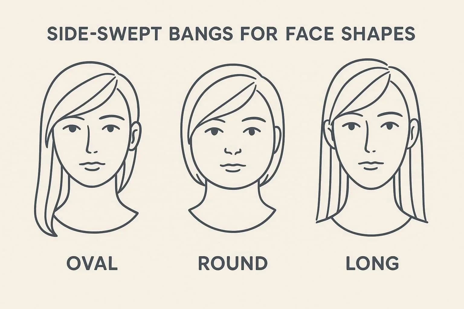 Side bangs work well for many people because they are very flexible. Unlike some other bang styles, side bangs can look good on most face shapes. If you have a long or oval face, side-swept bangs can make your features look softer without hiding them, adding a gentle touch by your eyes and cheekbones.