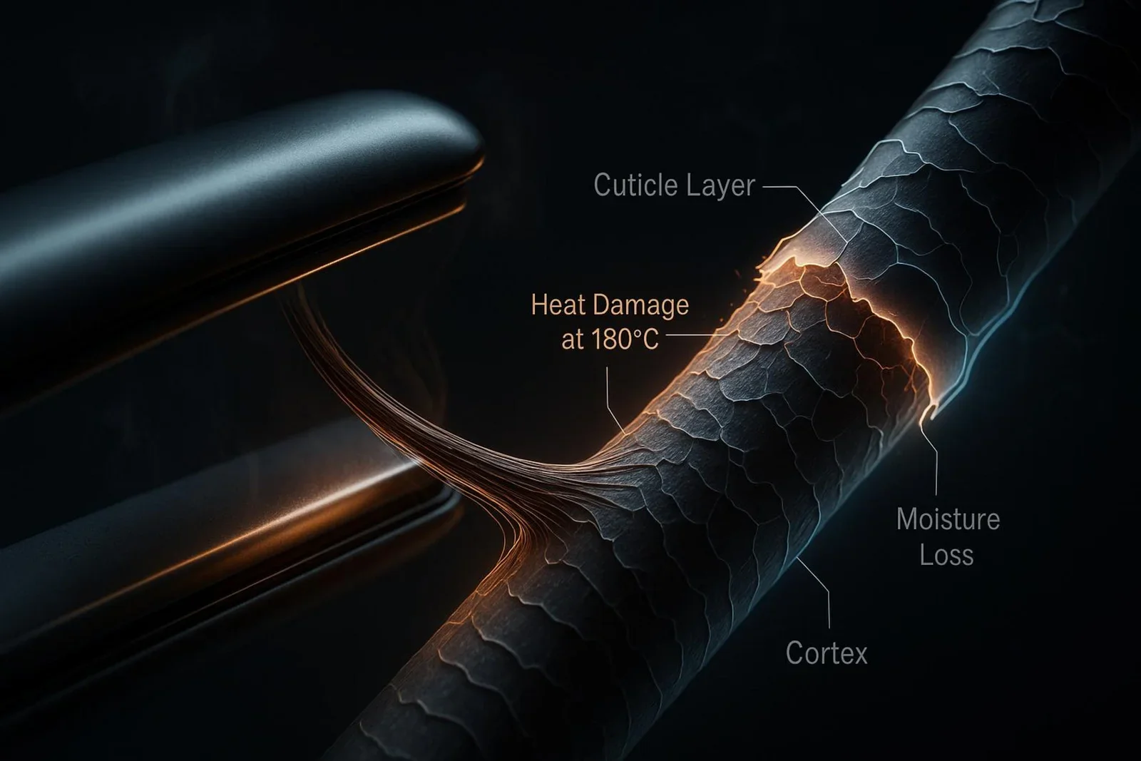 High heat from blow dryers, flat irons, and curling irons dries out hair and lifts the cuticle, which weakens the strand. The more often and hotter you go-especially without heat protectant-the more damage builds. Give hair breaks between heat sessions and always use a protectant.