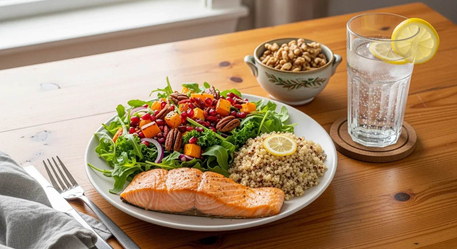 Eat Balanced Meals: Make each meal a mix of protein, whole grains, colourful vegetables, fruits, healthy fats, nuts, and seeds. Try to eat different coloured fruits and veggies to get a variety of nutrients.