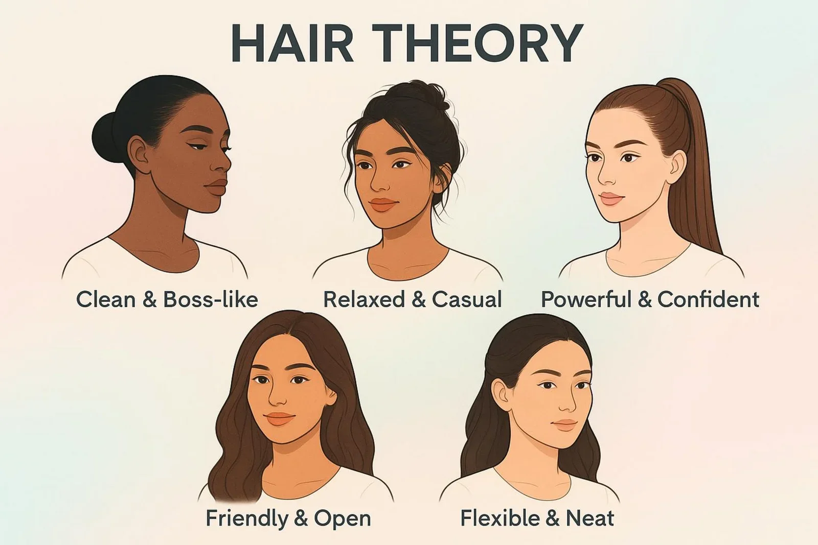 Hair Theory says your hairstyle isn’t just about what looks nice; it directly affects how people see you. It argues that things like your hair colour, length, and style play a big part in how others judge your personality. For example, smooth, neat hair may be read as professional and confident, while loose, slightly messy hair might seem creative and relaxed. These are the quiet messages your hair sends – the hints people pick up on without words.